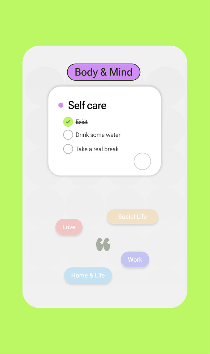 Thinkii keeps tasks across your life - home, work, self-care, and more.